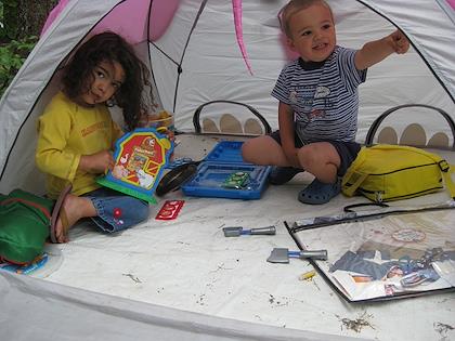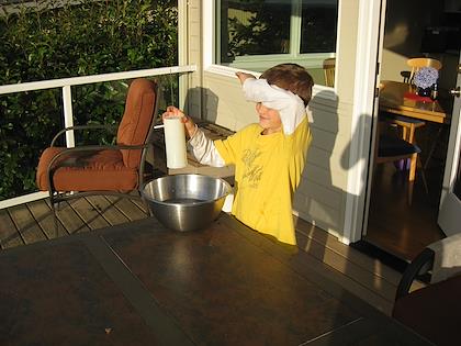 | Peter enjoys tying big knots | | We made a pump with Kenny (based on the Toys from Trash website) |