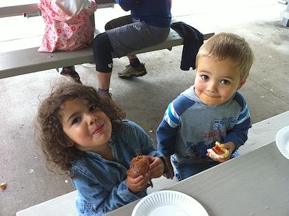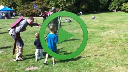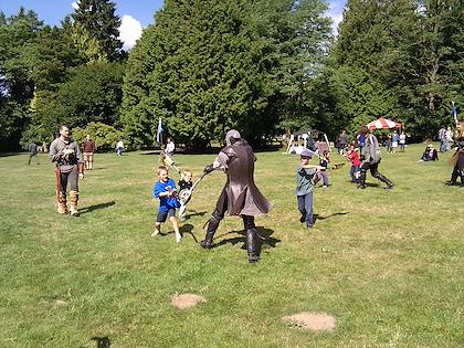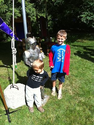 | At a medieval festival in VOlunteer Park | | For 1 dollar each, the kids were able to fight a medieval knight |