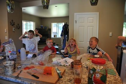 |  | |  | | Carving the pumpkin | | Kenny's birthday party |