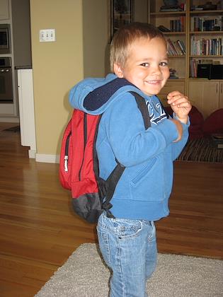 | Peter, getting ready for his first day of preschool | | Peter taking a picture of mom |