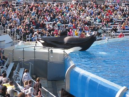 Not Shamu spits at the crowd.We were in the splash zone, but were spared. Not these folkes.