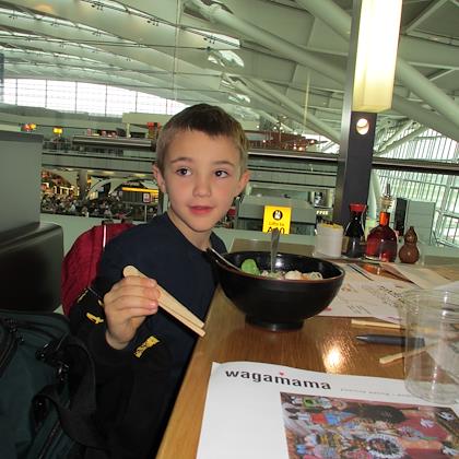 |  | |  | | We met a very friendly family there. These are their kids with Kenny and Peter. | | We tried to get a look at the United Nations next to the gardens, but they were closed |