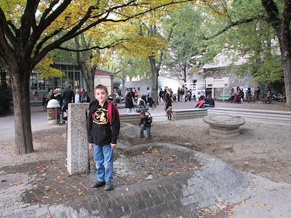 |  | |  | | The next weekend we went to the local botanical garden. | | Kenny needs to work on his Swiss drinking fountain technique. |