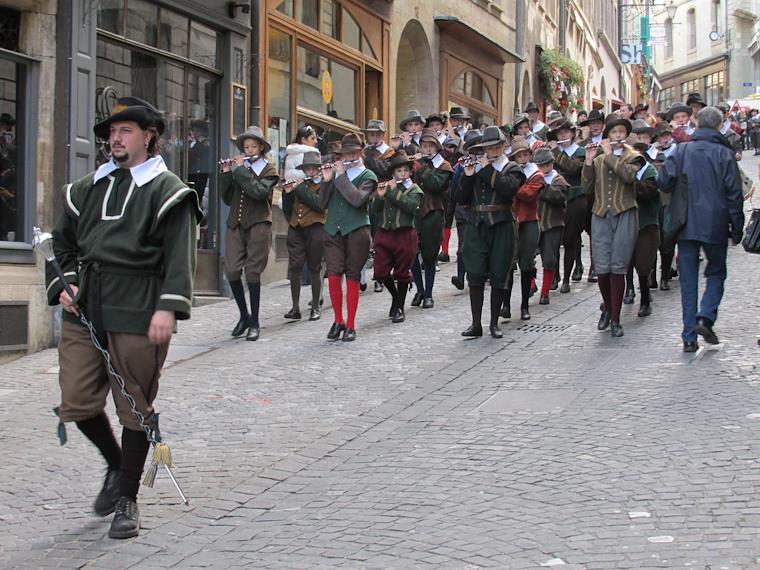 Pictures from the Escalade in Geneva. The Escalade is a fascinating festival that commemorates Geneva's victory in 1602 against attackers from the Duke of Savoy. Lots of Genevans dress up in period costumes, and lots of kids just dress up in all kinds of costumes.