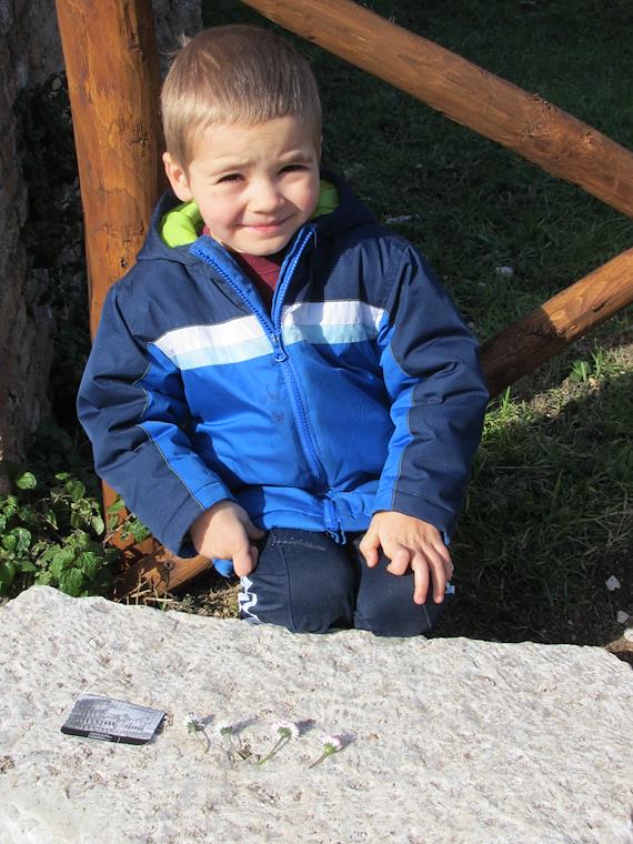 Peter wanted to display his treasures - his ticket stub, and some daisies he found