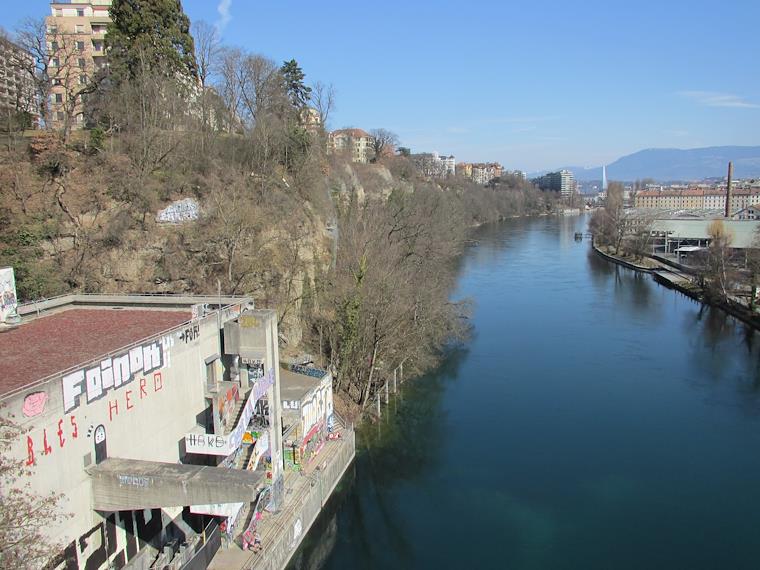 A view from the top, including the pumping station and the Jet d'eau in the background