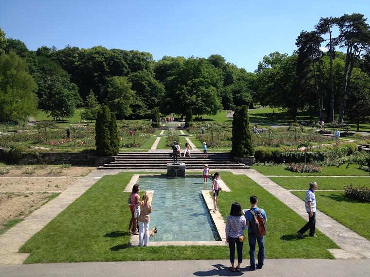 The rose garden at Parc la Grange, next to our house. Kids wade in the water all the time