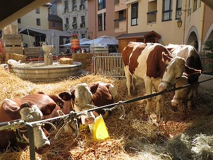 | We went to the alpage in Annecy. It's the celebration of the animals being brought down from the mountains, with a big parade through down. VERY crowded! | |