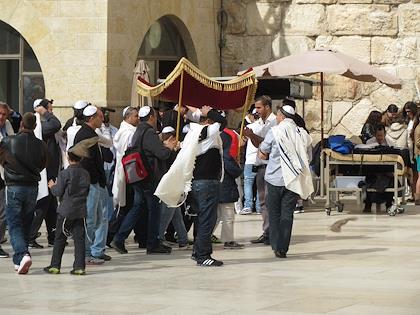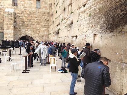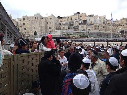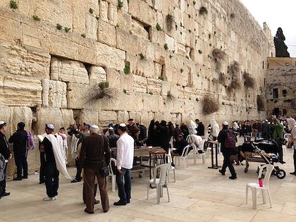 |  | |  | | At the Western Wall, formerly known as the Wailing Wall. The women's section and men's section are separate, and I have to say, NOT at all equal - the women's section was about a quarter the size, and of course much more crowded. | |