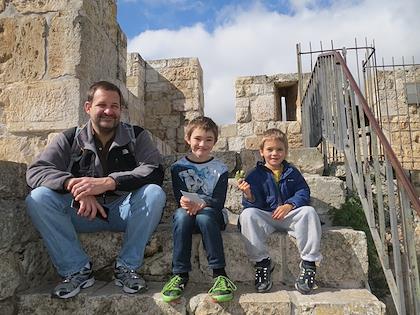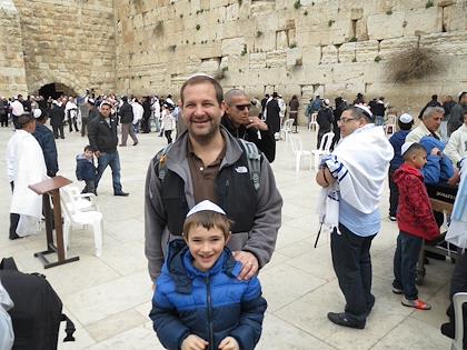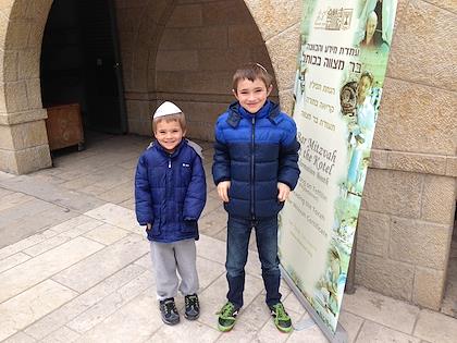 |  | |  | | The kids and Eric borrowed some yarmukes. | |