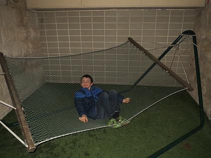 |  | |  | | Back at the hotel. In the summer, hanging out on these hammocks would have been nice! It was a little chilly, though. | | Walking on the old Ramparts |