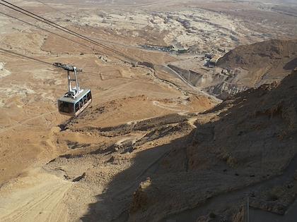 |  | |  | | There's another cable system to bring up equipment and supplies. | | The Romans built a ramp up to Masada, to lay seige to it. This is what's left now. |