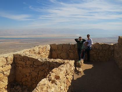 |  | |  | | A close-up of the ruins from one of the old Roman camp | | The Dead Sea off in the distance |