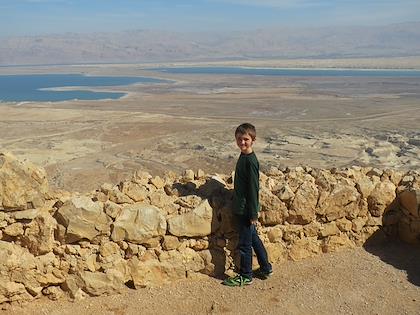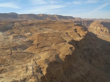 |  | |  | | We had lunch at the McDonalds at Masada! There's a huge food court there at the base, because eating isn't allowed up top. | | The view from the top of Masada. The square you see is one of the many Roman camps around the base, when Masada was attacked. |