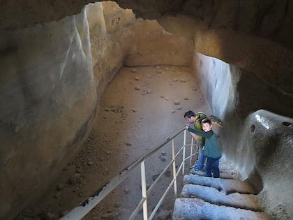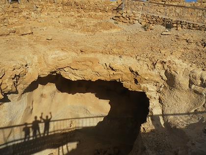 |  | |  | | A shelter on top of Masada where you can drink some water and escape from the sun. | | About to enter one of the cisterns on Masada. Very large and impressive. |
