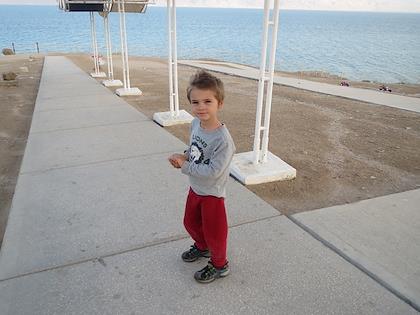 |  | |  | | A beach park on the Dead Sea. It was a little disappointing, since the water level has gone down so much that you almost have to go down a cliff to reach the water | | The long walk down to the water |