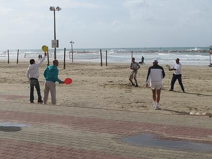 |  | |  | | We rented bikes in Tel Aviv, and biked around the waterfront | |