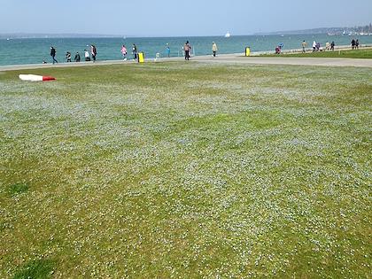 | On the lake - tiny little flowers blooming in the lawn | | The boys in Kenny's class played soccer together as a team on a few of the free Wednesdays. Kenny really loved it and was sorry when it ended. |
