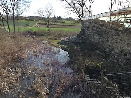 | Formerly there was a moat around this castle. It's now less of a moat, and more a muddy swampy area | | View of the park from our apartment |