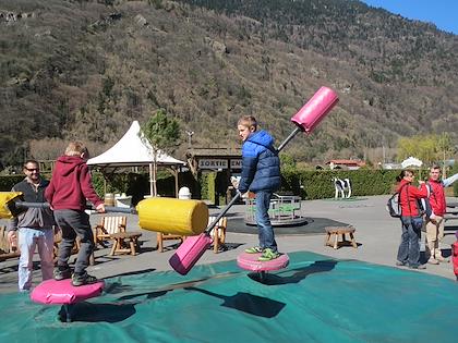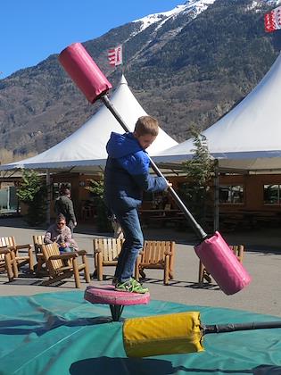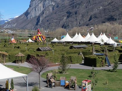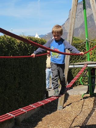 | We spent the day with Jeannette and Michelle and their family at Labyrinthe Adventure, a playland type area in Evionnaz. There were all kinds of games and equipment that wouldn't work in the US because of insurance costs. | |