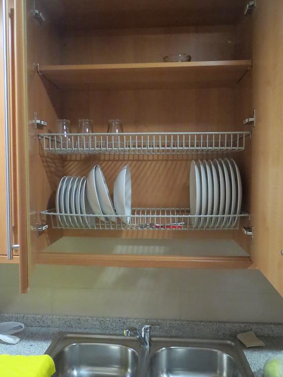 At our apartment. I remember this style of very handy dish drainer from when I lived in Spain as a student. You put wet dishes above the sink and they dry handily, without cluttering the counter
