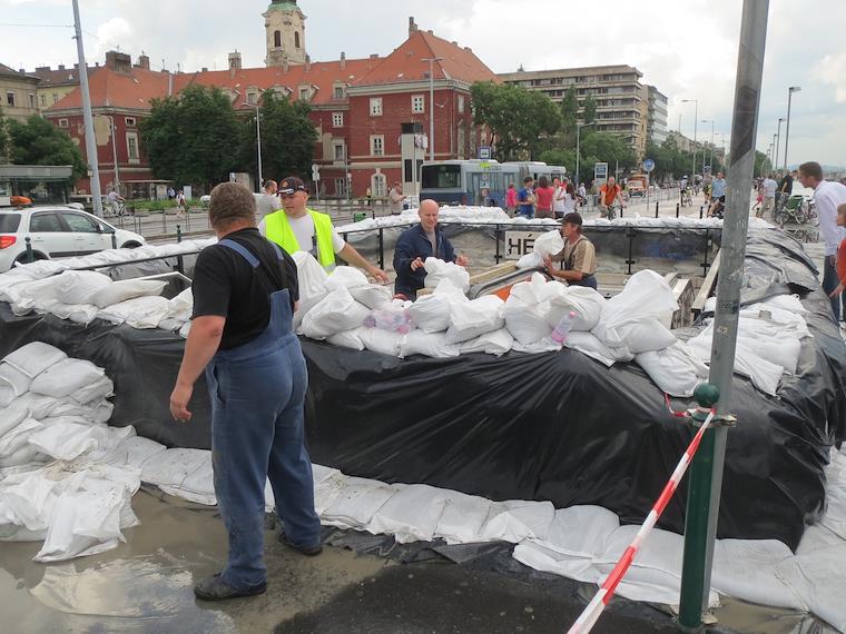 Extra sandbags reinforcing the defences of the Metro station