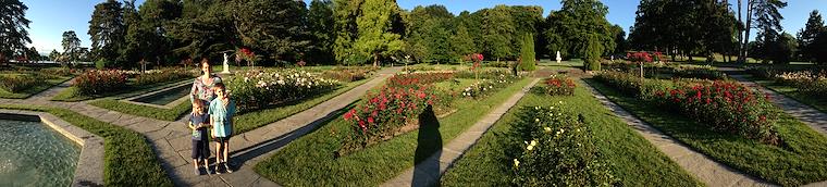 Panorama photo in the rose garden of Parc La Grange