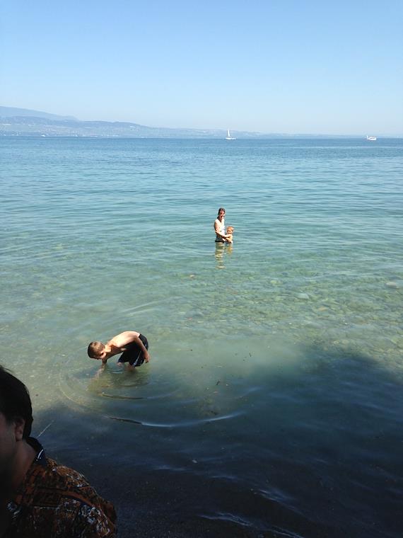 Swimming at the "beach" in Yvoire. It was beautiful, the water was warm, and I swam far out and got a great view of the castle.