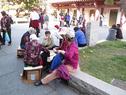 A park in Chinatown, filled with older Chinese people playing cardsAt Alcatraz