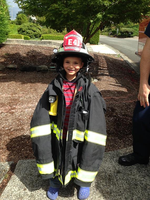 Firemen come to visit a local block party, and Peter gets to try on a fireman's outfit