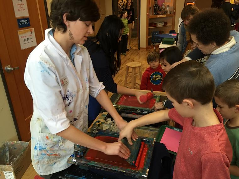 Making silk screen t-shirts at the Children's Museum in Olympia