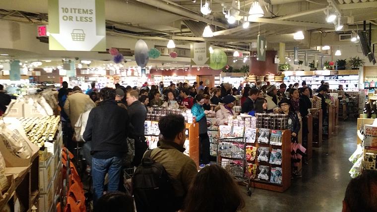 We walked to the nearest Whole Foods, at Columbus Circle, for some breakfast items. I've never seen a grocery store that crowded.