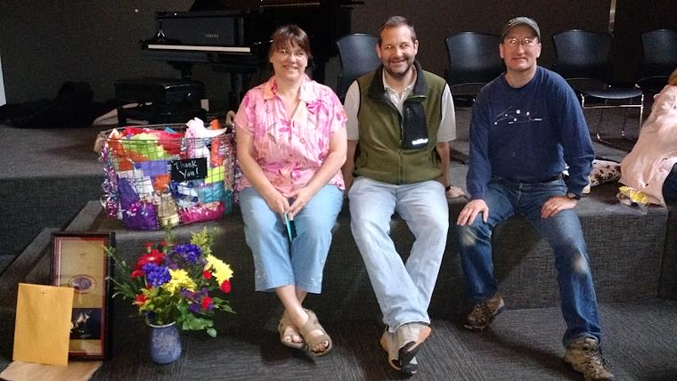 Eric receiving some tokens of appreciation from the homeschool co-op that for which he did a website
