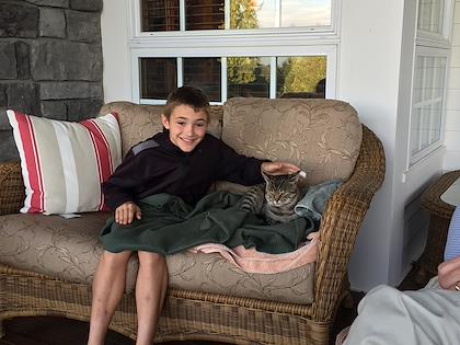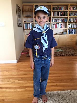| Peter, about to sell his cub scout popcorn | | He's hard to resist in his uniform! |
