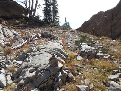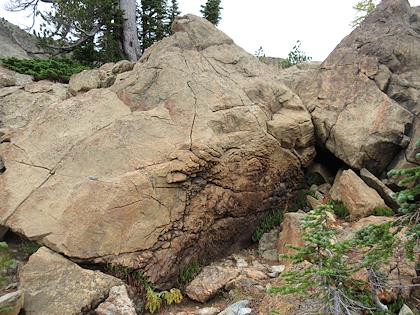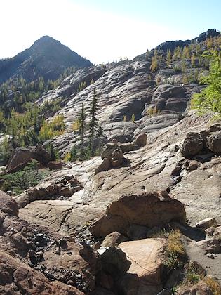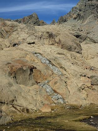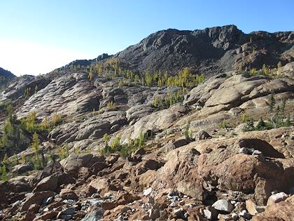 | Lots of interesting rocks | | We didn't see any mountain goats, which are aparently common here, but we did see lots of tufts of their hair. |
