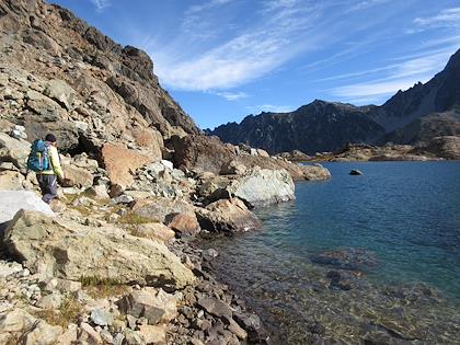 |  | |  | | We decided to try a circumnavigation of the lake. In terms of distance, it wasn't too bad, but there was serious scrambling involved. | |