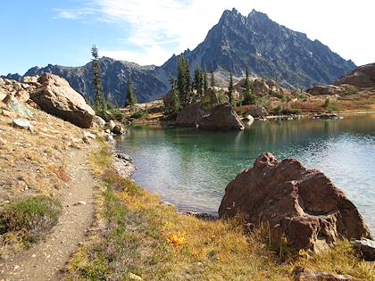 |  | |  | | | Over the gap, our first glimpse of Lake Ingalls |