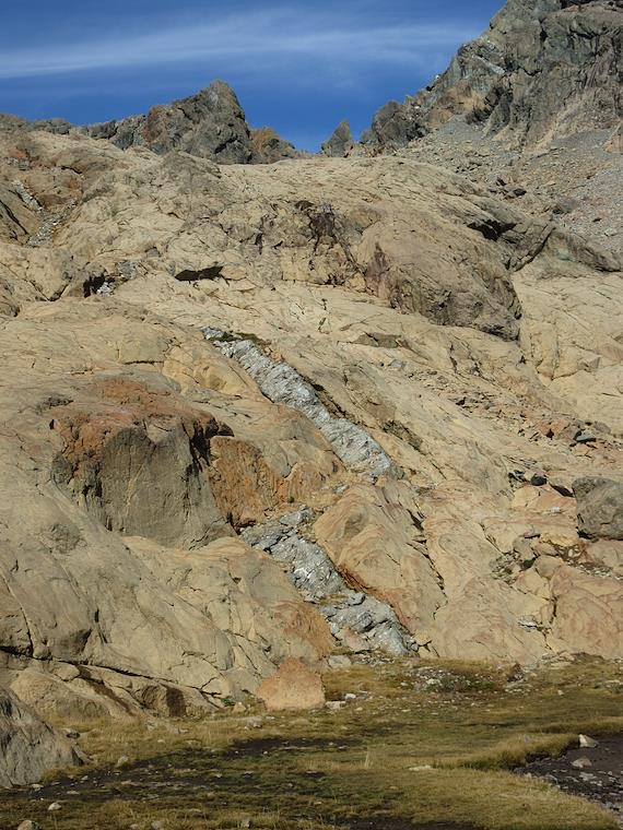 An unusual seam of rock in the cliff