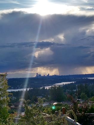 |  | |  | | Sunset/raincloud view of Seattle | |