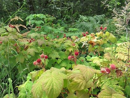 |  | |  | | I don't know what it was for, but it had weirdly twisted entries and exits. There were two of these structures close together. | | Massive fields of thimbleberries! This is where I ate an ant, that clamped on to my throat |