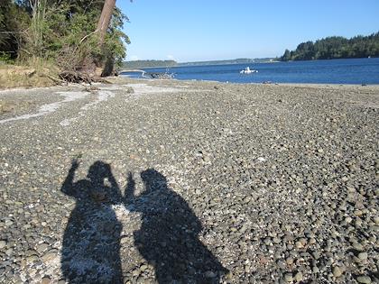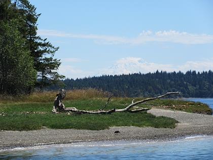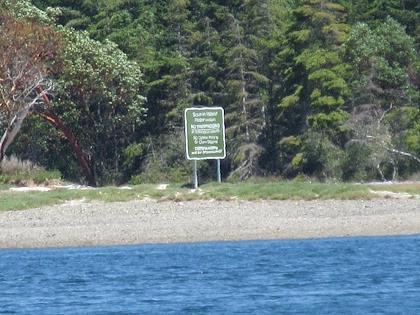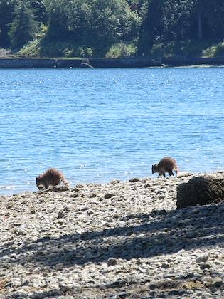 |  | |  | | Nearby Squaxin Island, owned by the Squaxin tribe, is completely inaccessible. This is the "no trespassing" sign. | | These raccoons would have stolen our food, had we not taken precautions. Their normal food here is crabs or clams. |