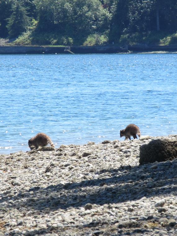 These raccoons would have stolen our food, had we not taken precautions. Their normal food here is crabs or clams.