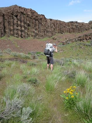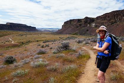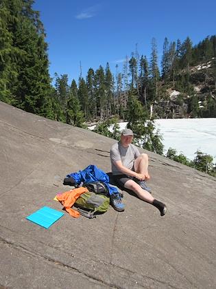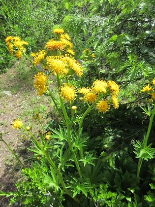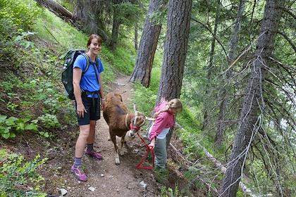 | Ingalls Creek hike. Interesting wildflowers - this is Silver Crown | | On the way back, a goat was loose on the trail! First time I've seen a pack goat. This girl fetched it back. |