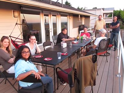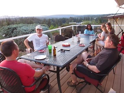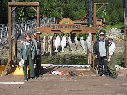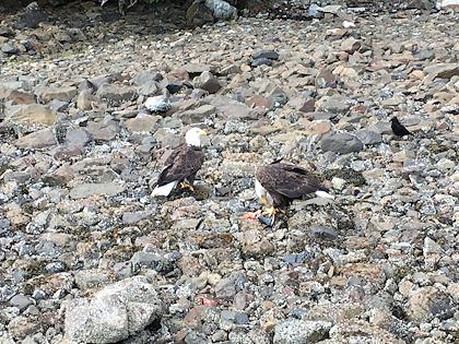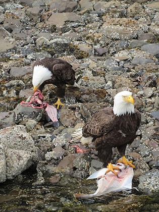 |  | |  | | Back at the dock, our haul, with Ben and Courtney | | Bald eagles feeding off the fish entrails |