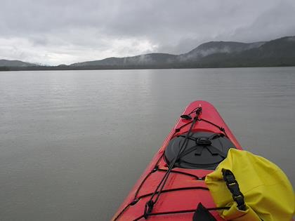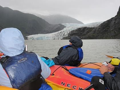 | Eric and I flew to Alaska on a group trip. Walking around Juneau - this is the old governers mansion | | Kayaking in Mendenhall Glacier lake. Cold! |
