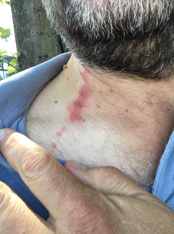 Eric had an angry rash on his neck, that he picked up in Africa. We tried to get antibiotic lotion for it in Amsterdam, but nothing is available OTC. We later learned from Melissa that it probably came from the Nairobi Fly, which is a strange insect that, when crushed on your skin, releases an acid that causes this kind of rash.