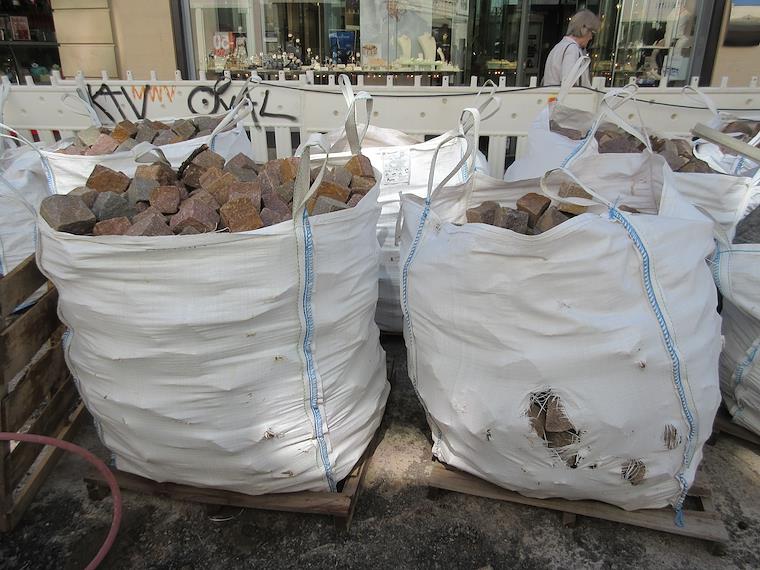 They were repairnig the cobblestone pavement in the old town, and transported the stones there in these bags