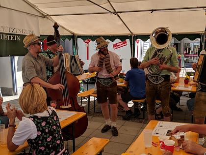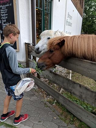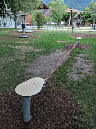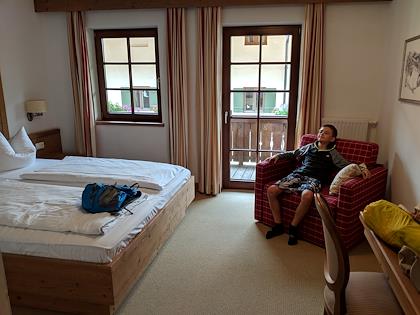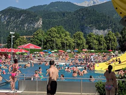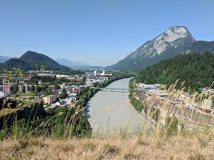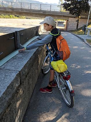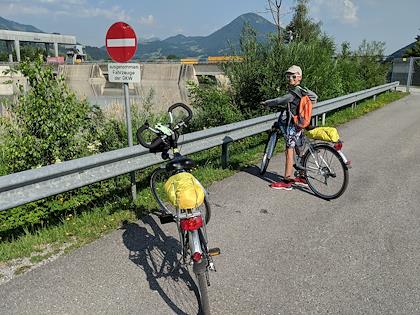 Towards Kufstein Peter and I learned a few things yesterday, in the heat. Number one - we need to start biking earlier in the day. In the afternoon it just gets too hot. Number two - we need to go for less distance. Our pace is far, far lower than the average biking pace - at least what our mapping app shows - and we probably shouldn't aim for more than 30 kilometers a day, at least on the hot days we've been having. One more thing I learned - I should bring a few more Ambien sleep pills with! I've been taking a half Ambien pill to help me deal with jet lag, but I continue to wake up for hours in the middle of the night, and I could use a few more of them. So after the standard breakfast buffet at the hotel we were at last night, we were on the trail by about 8.30. The actual bike path itself is fine - always either a separate path or very little traffic - but going off the bike path to get to the hotels can be stressful because of the traffic. The main event of the bike ride today was that the Inn bike path was blocked by a landslide! We went over a bridge, just where my mapping app told me to go to follow the path, and it became a very narrow and wooded dirt trail. And then - boom - a landslide. Peter had told me earlier that the sign for the bike trail was pointing in the other direction, but I didn't see it, and so went by my map - which was probably correct years ago, before the landslide.  | | The landslide that blocked our way | Once we got to the hotel, around 11.30, we had to go out again immediately to get some food. We stopped at a tiny Spar grocery store down the street, and bought some bread, spreadable cheese, salami, nectarines, yogurt, and a few snacks to eat while biking. I think that's part of what made us so tired towards the end of the bike ride this morning - no snacks. Later in the afternoon we biked to the old town, just a few minutes away. And - bonus - they were having a festival! There were lots of traditional dances and singing, really enjoyable to watch. I wanted to talk to people but though I spoke German really well as a child, but now my spoken German is very clumsy, so I felt a awkward about trying to engage people in conversation. There was a kid's area with, among other things, a climbing wall and trampoline jump that would have required pages of liability waivers in the US, that kids could just walk up and try out here. Walking around the festival, I felt pretty dowdy. The clothes I'm wearing are designed for one thing - to be useful on a bike ride. They're quick drying, and give a lot of sun coverage. They are definitely not at all dressy. Many women were dressed up to the nines, though. Some in beautiful "Tracht", which is the traditional women's outfit. And some women, even on bikes, wore dresses and makeup! Here's a few more picture from throughout the day.  | | Peter looking at an additional metal barrier on the river, to prevent flooding |  | | The river Inn, turbulent and rough. |  | | A water break. There were so many fountains we didn't carry much water |  | | The best of the musical groups we saw |  | | Peter had fun building up the pressure in this fountain, and then spraying it out |  | | My dinner - a leberkaese semmel (like a block of sausage in a roll) |  | | Peter on the bounce trampoline | A rest day in Kufstein Today we took a rest day, because it was supposedly going to be extremely hot. It was definitely hot, but didn't feel so extremely hot. But maybe it's because we weren't biking! I finally slept through the night last night, even though there was a loud wedding reception here. But we had a fan on, and the noise didn't bother me. I'm finally getting over jet lag. The breakfast buffet at the restaurant was meant to be very exceptional - and it was fine, but some of the extra touches that were meant to be exceptional didn't work. For instance, the plum jam (I love plum jam) had...cloves in it. Some people may like that, but it definitely gives it a weird flavor. The main plan for the day was to see the Festung Kufstein - the fortress on top of the hill in Kufstein. We got there right when it opened at 9, to beat the heat, and saw no other guests for about an hour. It's an absolutely wonderful place to wander around and learn some history. What a lot of wars they had back then! Peter's favorites in the fortress were playing hide and seek in some of the rooms with all the little alcoves, and also in the prison, among all the cells.  | | Can you find Peter? | Also the deep well, where they supplied the fortress with water - he was able to swing the chain that led to the water (60 meters down) and then wait a few seconds for the swing to come back up again! There were some wonderful views of the area from the top. You could see another fortress on a neighboring hill - many wars back then meant many fortresses. Here's a few more pictures from our fortress visit.  | | On the tram going up to the fortress |  | | There was a prison at the top of the tower. | There was an organ concert at noon, and they had a big crowd of chorale singers watching. After the concert, the singers sang an impromptu song. After a rest in the hotel room in the early afternoon, we went to the local swimming pool. Along with the rest of town. Seriously, the place was absolutely packed - as it would be on, on the hottest day of the year, which was also a Sunday. It was really astounding how many people were foreigners, not speaking German to one another. I wonder what percentage of the population were born outside Austria? Peter had a great time going down the slide. They had 2 slides there, one really high one that you had to wait for, and one "kiddie" slide that still looked like a lot of fun, but multiple kids could go down at the same time. One the way back to the hotel we stopped at 2 restaurants, trying to get a meal. At one place, they didn't have a menu outside the restaurant so I asked for a menu. But 2 things - I used the word "menu", which I thought was a