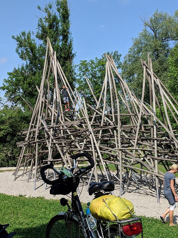 Another piece of playground equipment you'd never see in the US. Peter is at the top left.