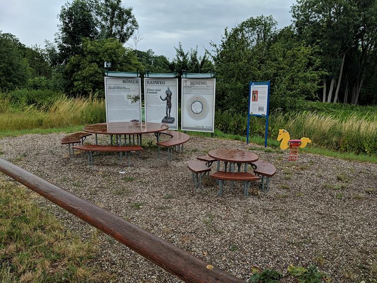 The beginning of the Roemerradweg - Roman bike trail. It has all kinds of fancy benches and signs